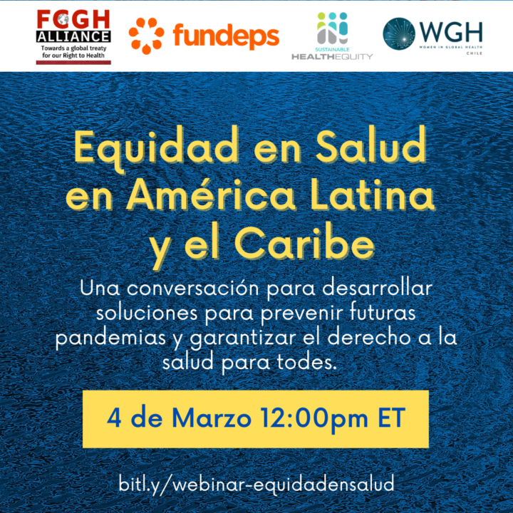 Este webinar explorará equidad en salud en América Latina y el Caribe, con enfoque especial en la región pero también con una perspectiva comparada en el panorama de salud global. Expositores y participantes presentarán y evaluarán soluciones a los desafíos a lograr equidad en salud y el derecho de salud en la región, incluyendo la idea de una Convención Marco en Salud Global.
